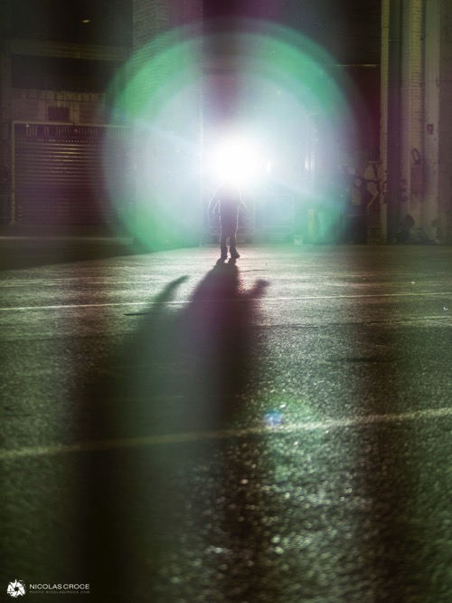 Sur cette photo, j’ai photographié un enfant qui marchait pile au moment ou il passait devant un projecteur. Je n’avais qu’une demi seconde pour déclencher. Pas le temps de réfléchir à ce moment là !