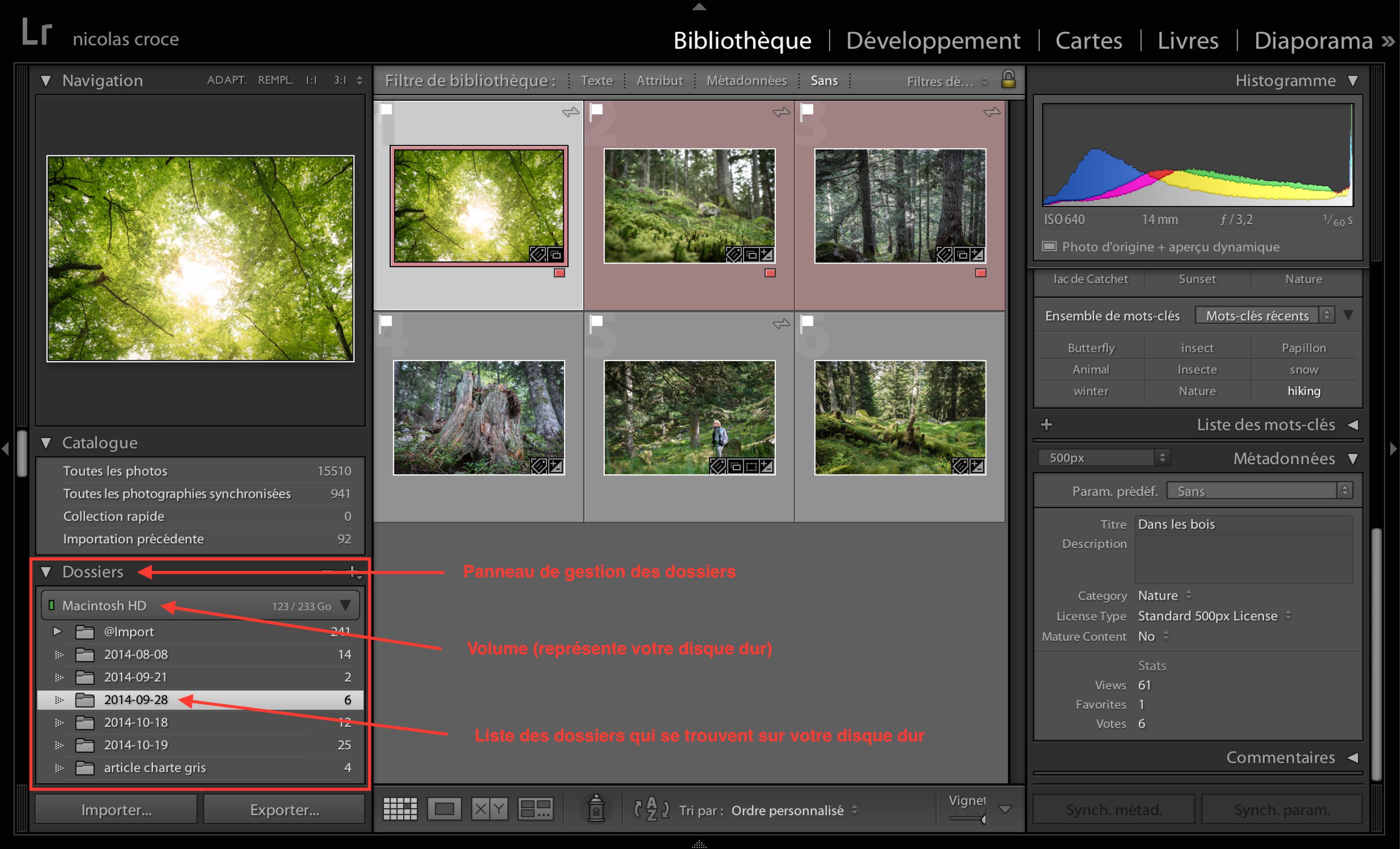 Il y a deux choses essentielles à comprendre concernant la façon dont Lightroom gère les dossiers et les photos sur votre disque dur :