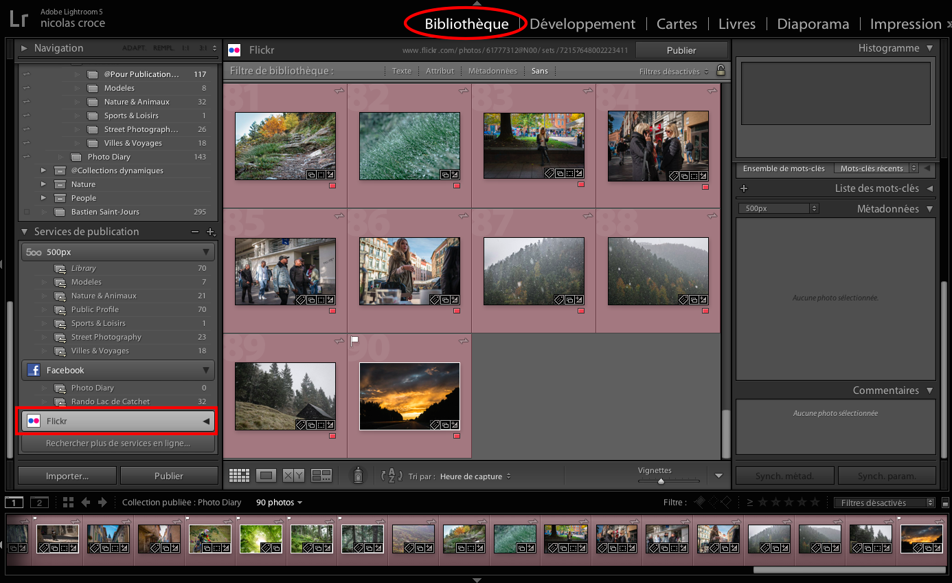 Ces métadonnées peuvent également être ajoutées par la suite, depuis Flickr. Mais croyez-moi, en les ajoutant sur Lightroom avant de synchroniser vos photos, vous gagnerez beaucoup de temps ! Et surtout, ces informations vous permettront également de trouver plus facilement vos photos dans votre propre bibliothèque Lightroom.