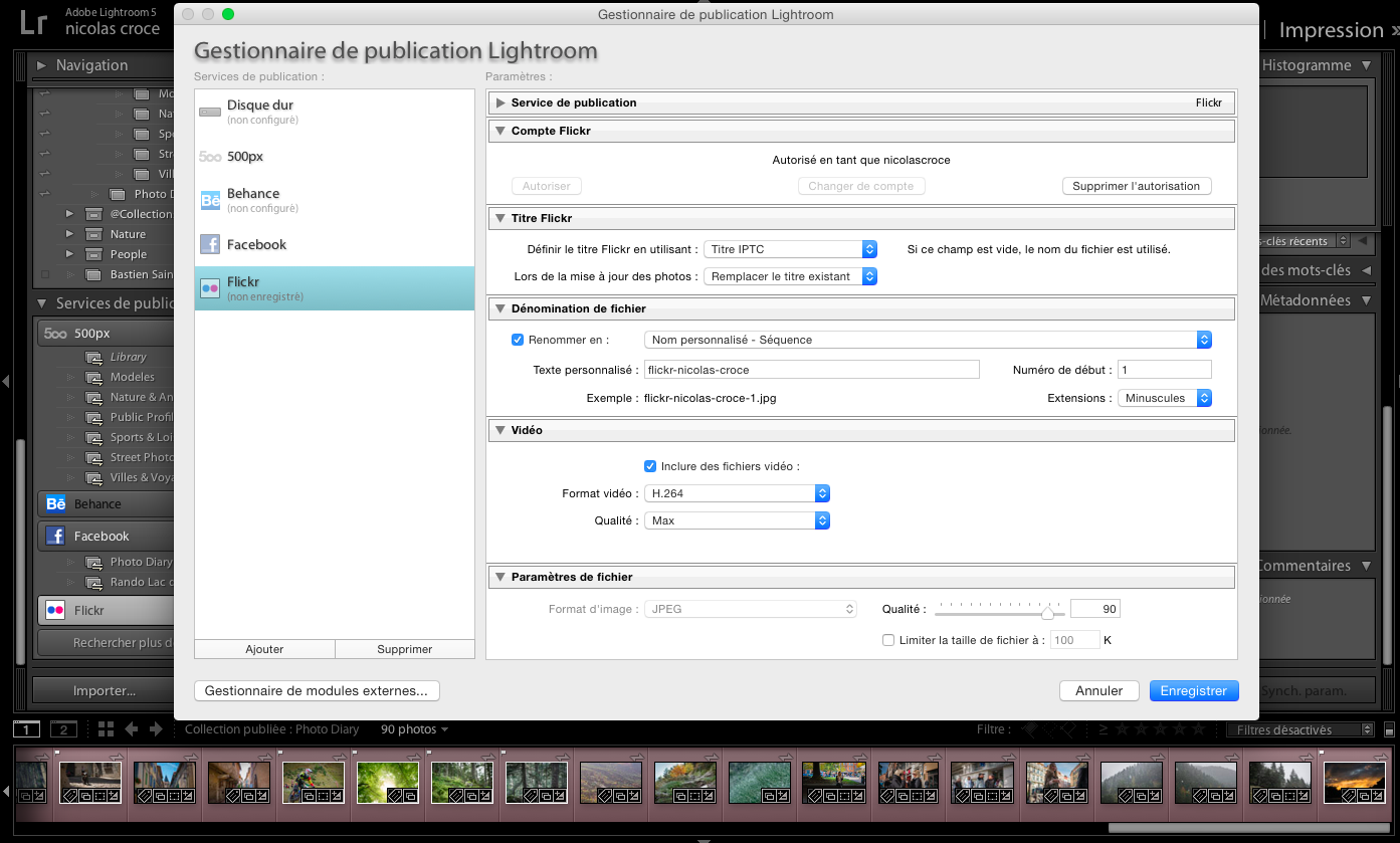 Vous êtes maintenant prêt à publier vos premières photos sur flickr, mais avant cela, faisons un rapide tour d’horizon des options à notre disposition dans la fenêtre de configuration du service de publication vers Flickr :
