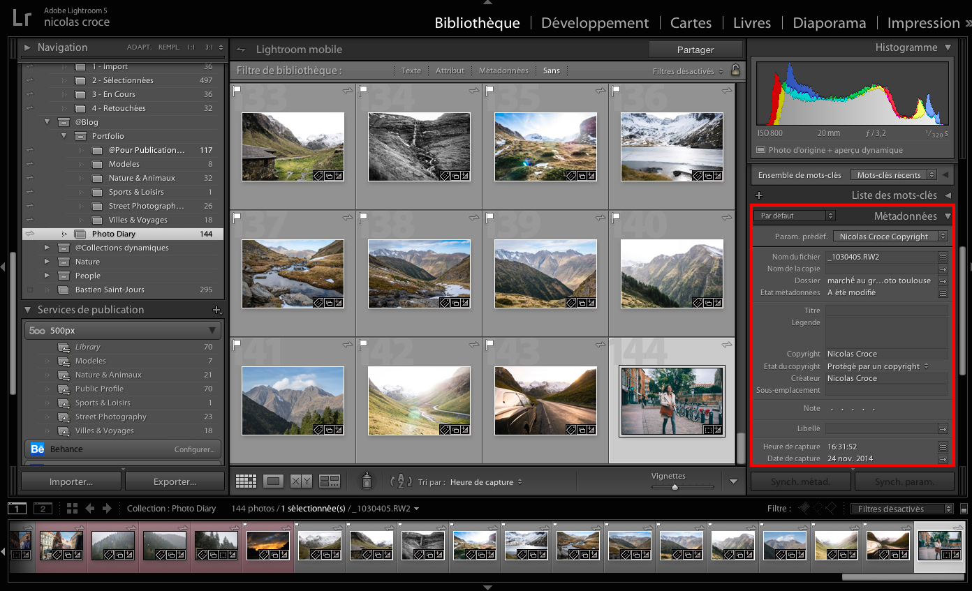 Les métadonnées sont des informations qui sont stockées dans le fichier de votre photo par Lightroom, et qui fournissent des informations à son sujet.