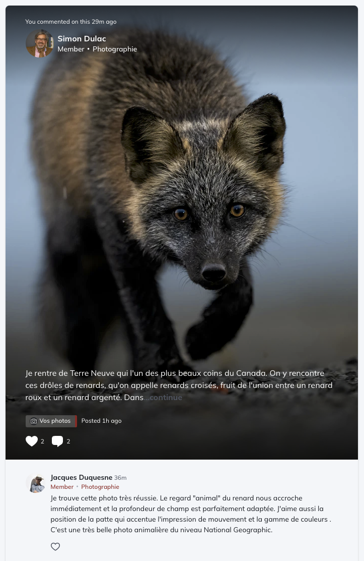 J’aime cette communauté ! Ici je me sens bien et je sais que je peux publier sans pression. Vos retours positifs m’encouragent d'autant plus. Je sais que si j'ai des questions que ce soit photo, livre, blog, développement personnel, c'est ici qu'on peut les poser. J'aime l'entraide que l'on retrouve ici. — Massi
