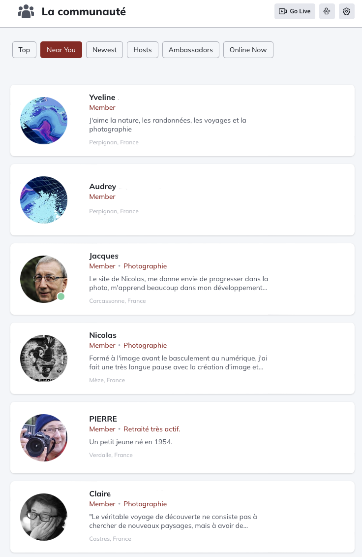 Vous pourrez trouver des membres qui se trouvent à proximité de vous (pratique pour proposer des sorties communes ou lorsque vous visitez une ville inconnue.)