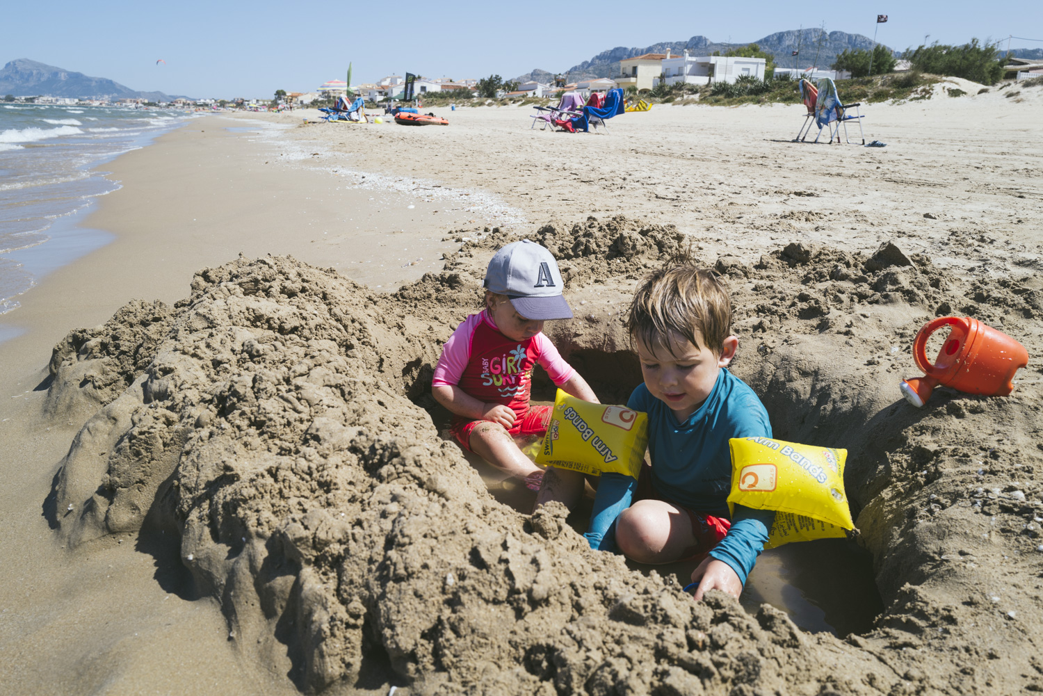 Aujourd’hui, on à passé l’après-midi à leur courir après, à les empêcher de plonger dans l’eau, éviter qu’ils n’embêtent nos voisins de plage.