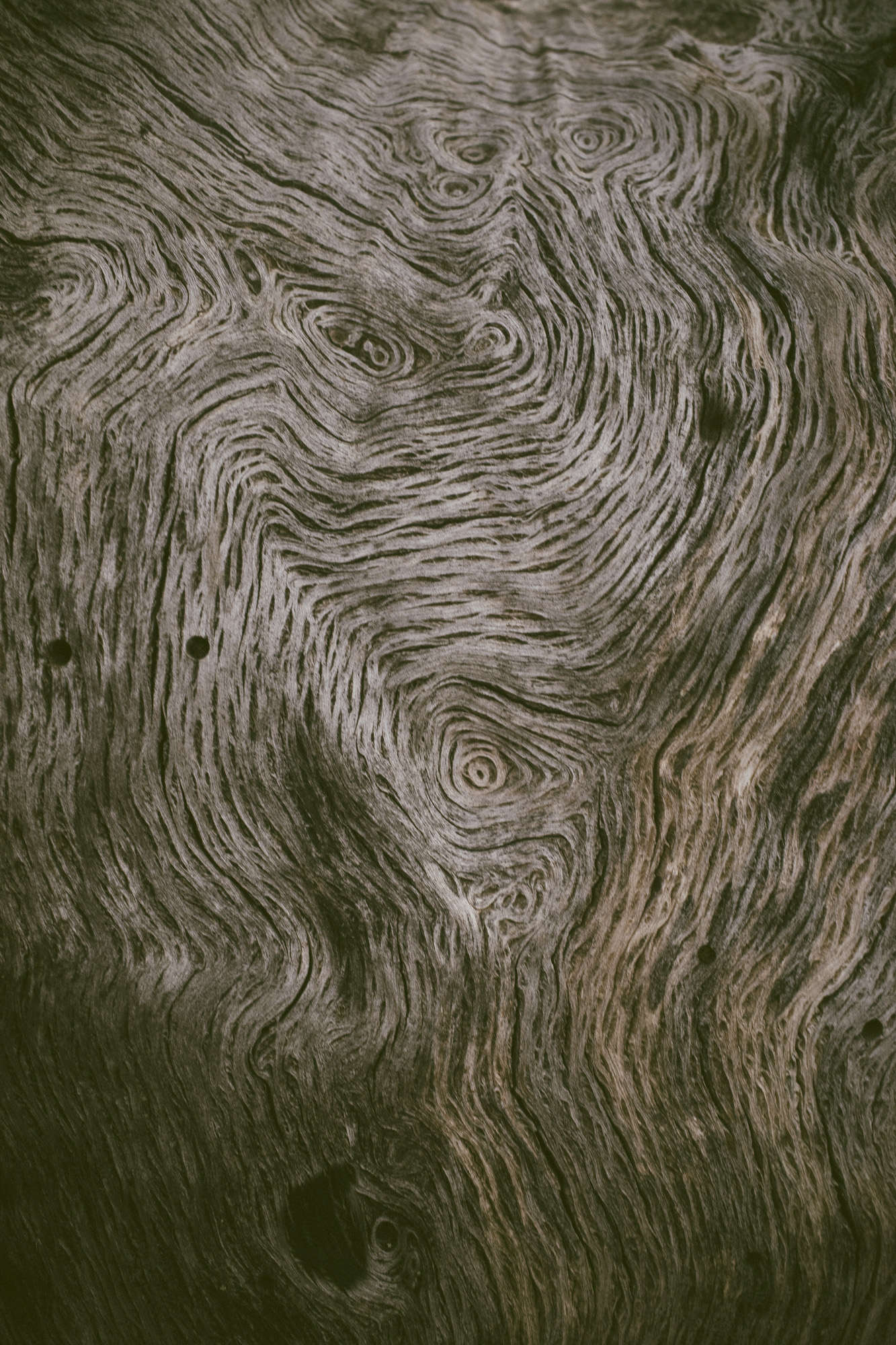Il s’agit d’un tronc d’arbre, dont l’écorce a disparu dans un incendie. En passant à côté, je me suis arrêté pour observer les dessins tracés dans le bois, et en ai profité pour prendre quelques photos.