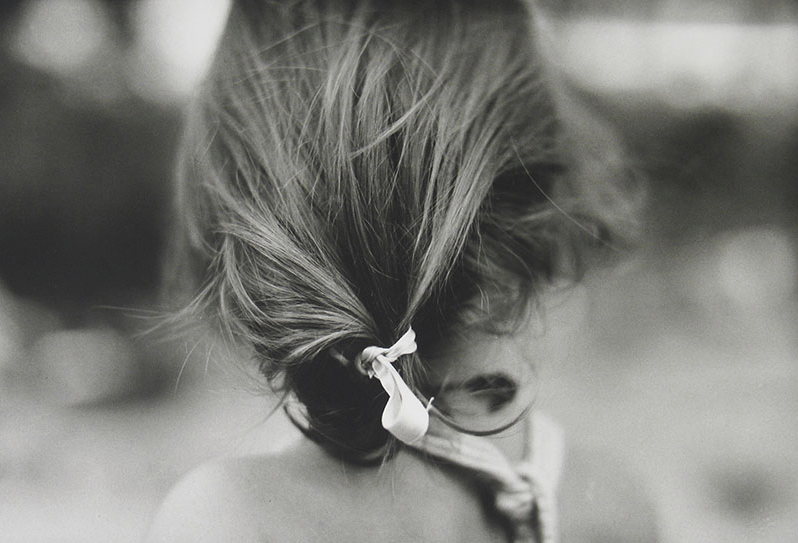 La même technique peut être utilisée pour isoler un détail intéressant. Sur la photo ci-dessous, Saul Leiter a utilisé une faible profondeur de champ et a fait sa mise au point sur ce petit ruban qui attache délicatement les cheveux de son sujet.