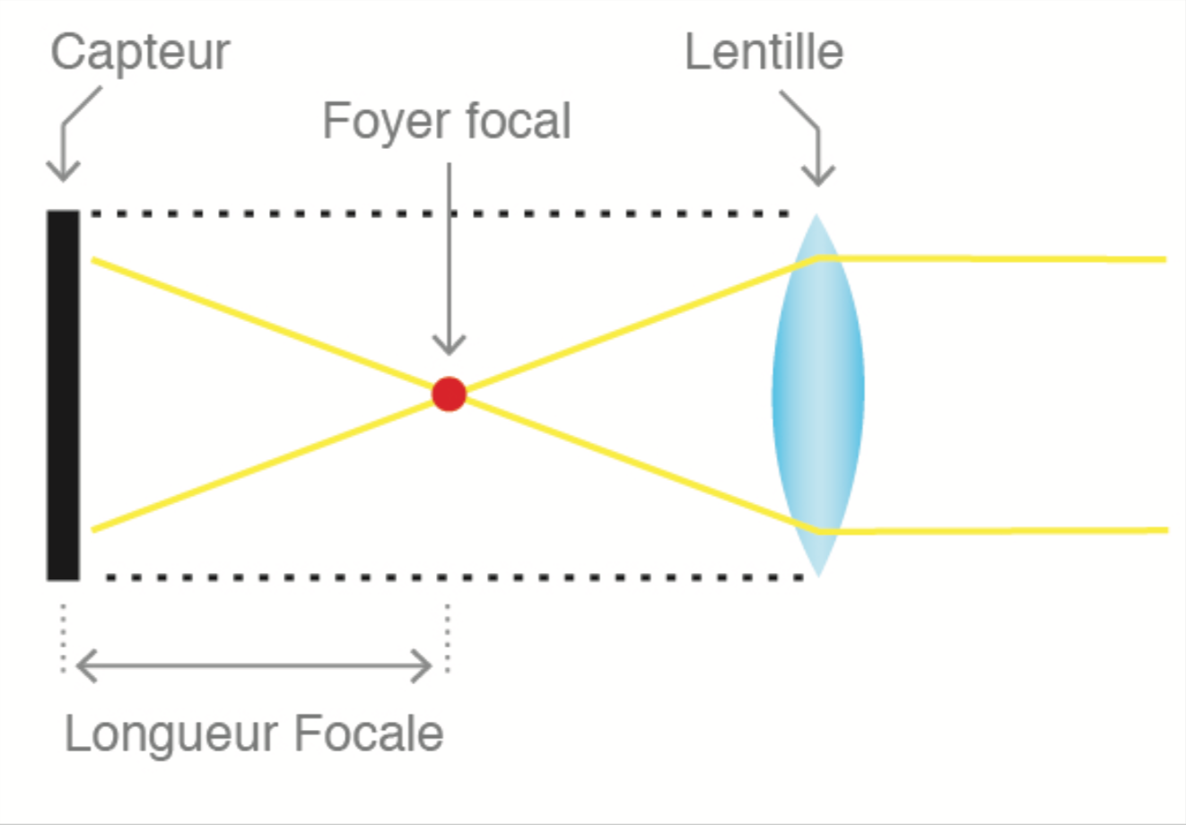 La longueur focale est la distance entre le capteur de votre appareil photo et le foyer focal de votre objectif, exprimée en millimètres.