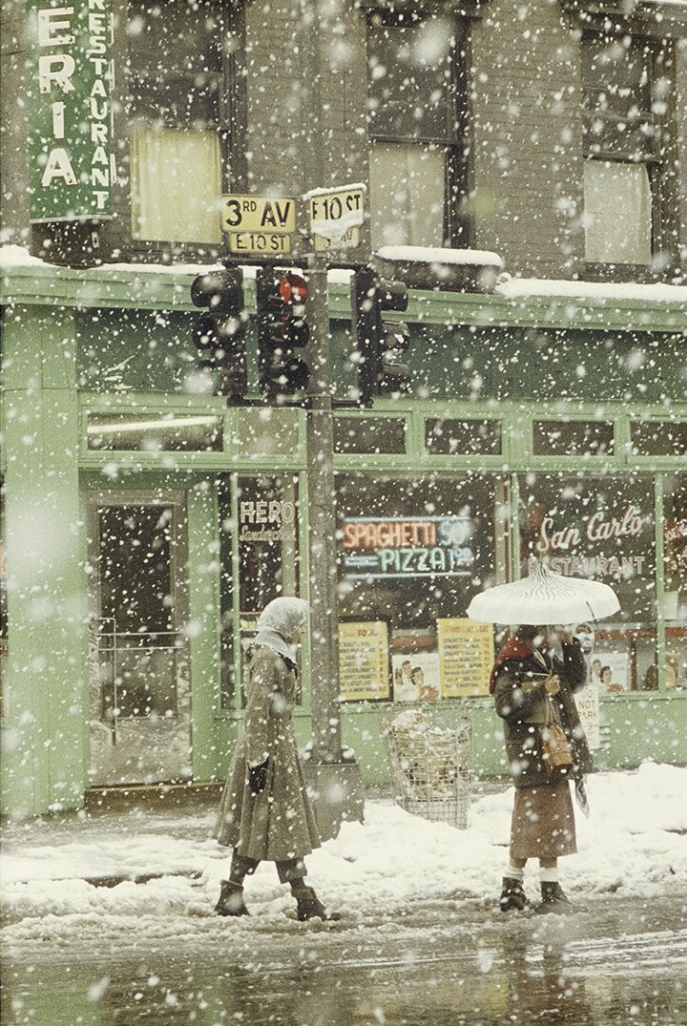 Saul Leiter, un photographe dont je vous parle fréquemment, a passé toute sa vie à prendre des photos dans le même quartier de New York. S’il a pu créer autant de magnifiques images sans changer d’endroit, c’est parce qu’il ne photographiait pas le quartier lui-même. Il photographiait la vie du quartier, c’est-à-dire les gens qui s’y promènent, qui y travaillent ou qui y vivent. Et cette vie n’est pas figée ; c’est un éternel changement, un éternel renouvellement.