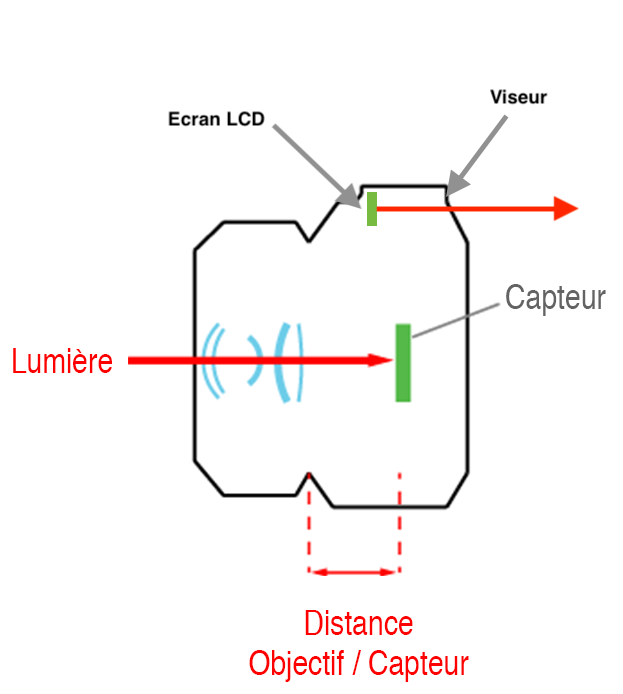 Lorsqu’un appareil est équipé d’un viseur optique, la lumière que vous y voyez entre par l’objectif, rebondit sur le miroir qui se trouve devant le capteur de votre appareil puis passe dans un penta prisme (ou penta miroir). Ce dernier élément permet de retourner l’image, pour qu’elle ne soit pas inversée (le haut en bas) quand vous regardez dans le viseur.